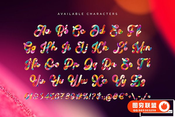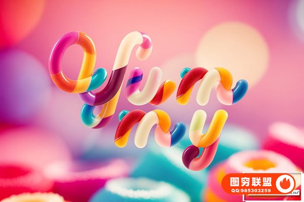 图穷联 » [字体]糖果色扭曲胶囊形态创意设计彩色英文字体 Yummy Candy -Color