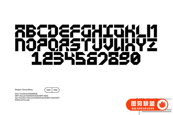 图穷联 » [字体]硬派严谨工业风斜角几何美学设计英文字体 PX82 -Mono™