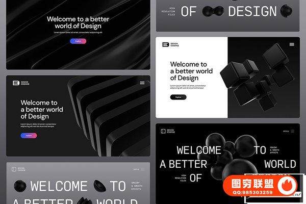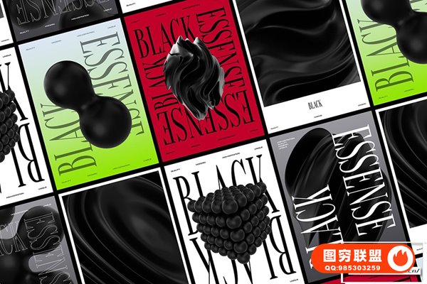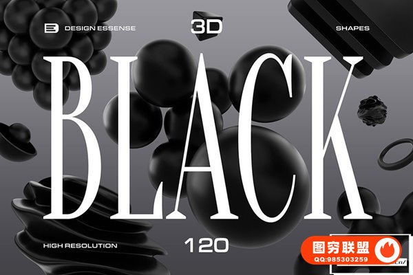 该套装包含120 个高品质几何和抽象黑色 3D 形状。非常适合海报、封面、网页设计、社交媒体、包装或任何其他需要大胆和时尚设计的创意项目。