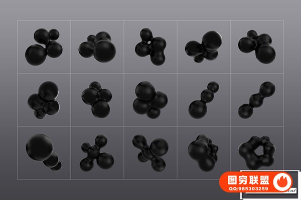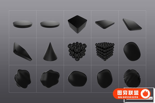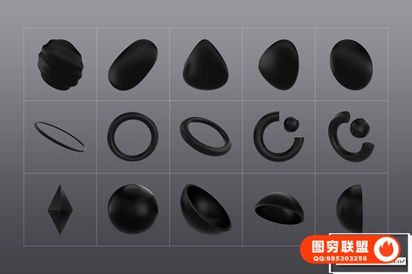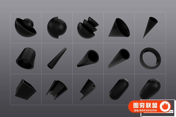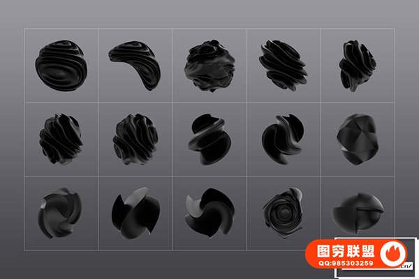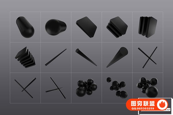 图穷联 » [PNG素材]120款黑色3D立体抽象扭曲不规则几何图形PNG创意素材 3D Bla