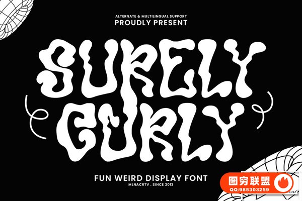 [字体]复古趣味酸性圆润涂鸦扭曲艺术创意设计英文字体 Surely Curly Fun Decorative Display