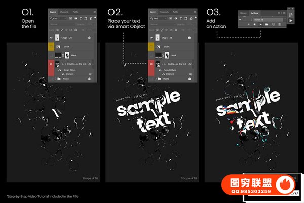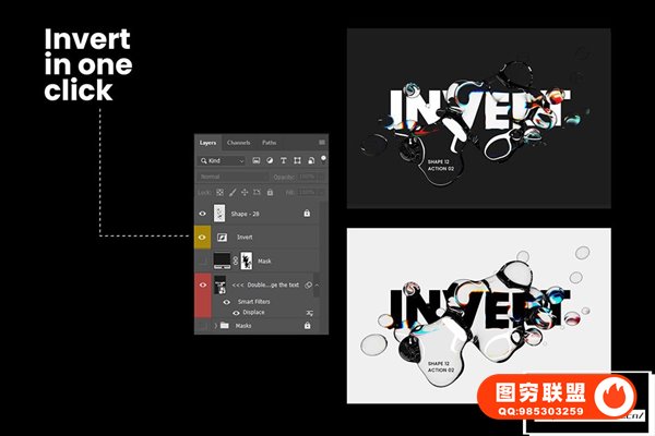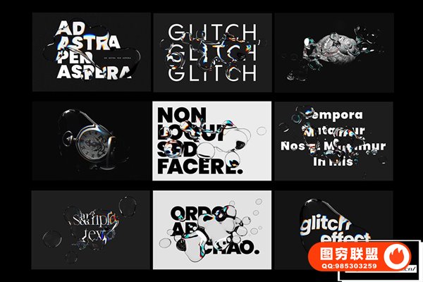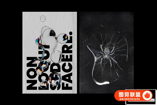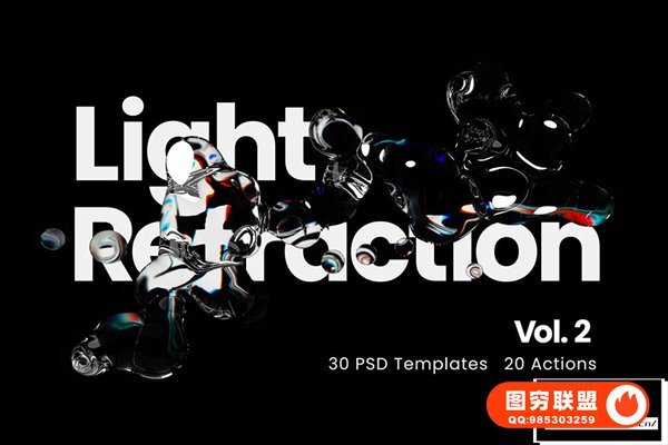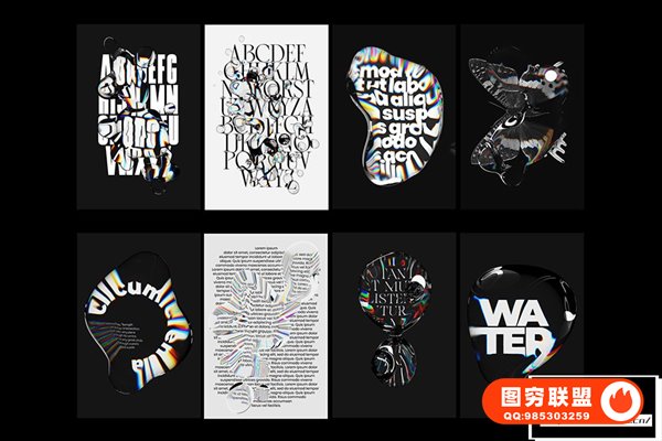 图穷联 » [PSD模板]30款透明水滴光线折射失真扭曲文本特效海报创意设计PS模板动作 Ina