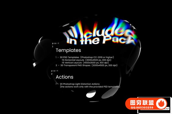 该包由30个可自定义的Photoshop模板和20个PS动作组成。模板非常容易使用:将文本或图像放置在智能对象中,并应用其中一个效果(文件中包含逐步视频教程)。