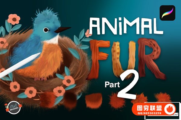 图穷联 » [Procreate笔刷]35支逼真毛茸茸动物鸟兽皮毛插画Procreate笔刷 A