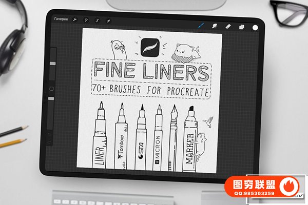 [Procreate笔刷]75支精细眼线笔化妆Procreate笔刷 Fine Liner Brushes for Procreate