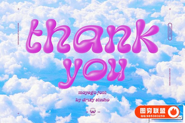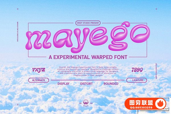 图穷联 » [字体]复古趣味手写Y2K流体气泡扭曲排版装饰英文字体 Mayego – Exper
