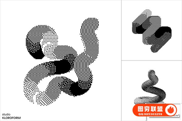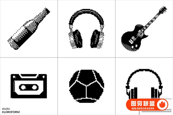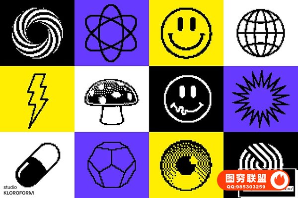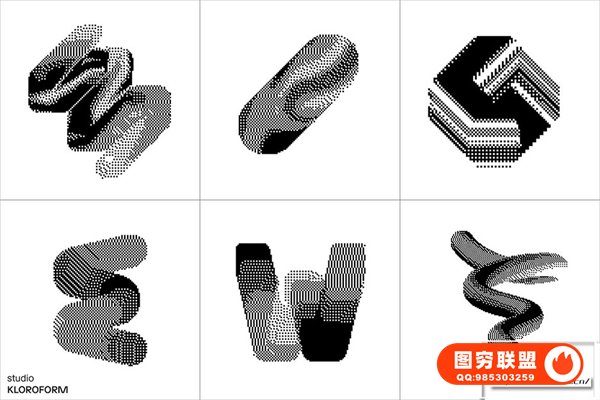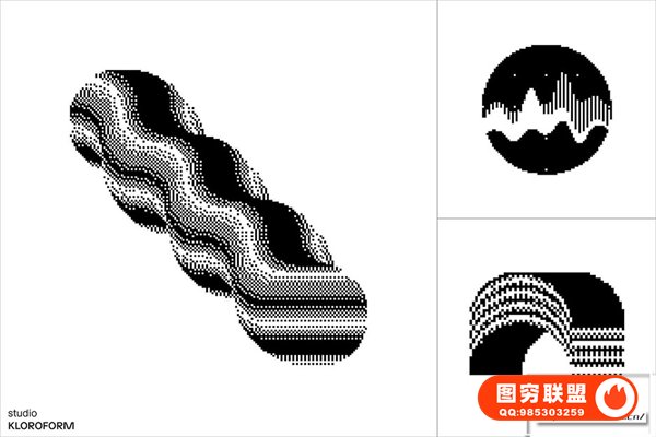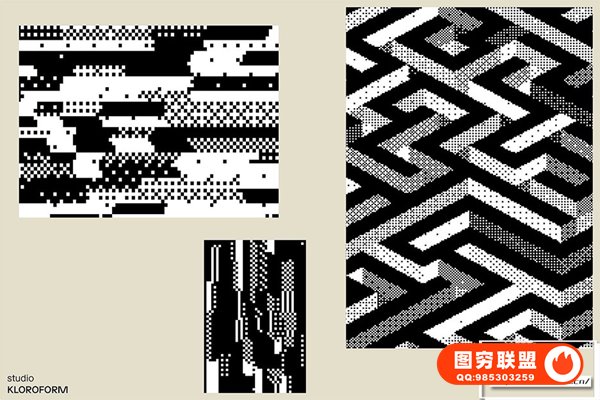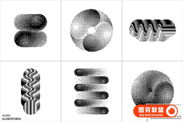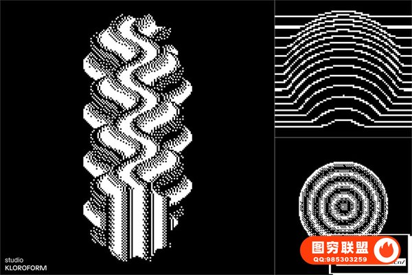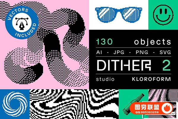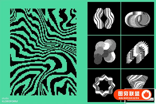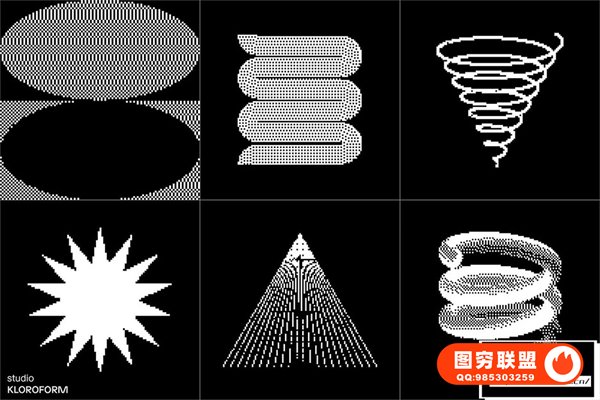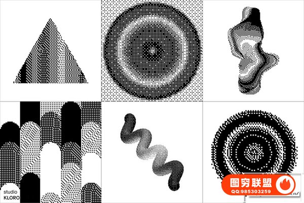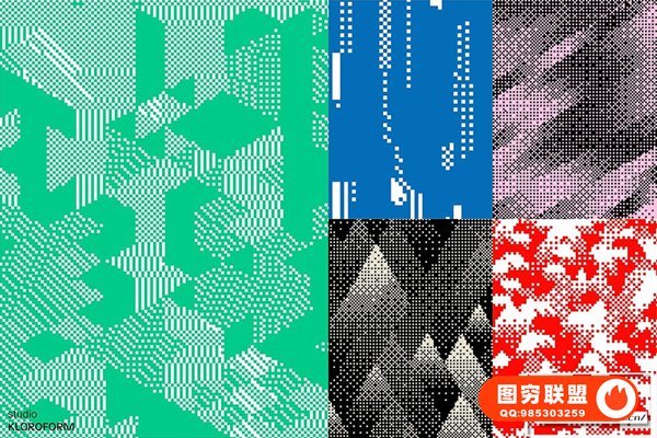 图穷联 » [矢量素材]130种复古像素抖动颗粒化抽象扭曲艺术图形设计元素矢量素材 Dither