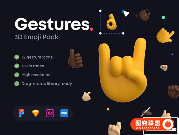 Gestures 是一个现成的时尚有趣的表情符号 3D 图标库,可以立即在您的项目中使用。