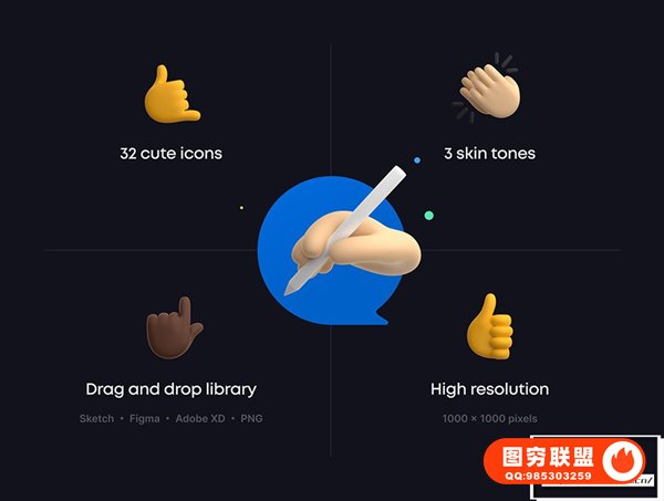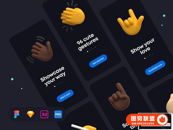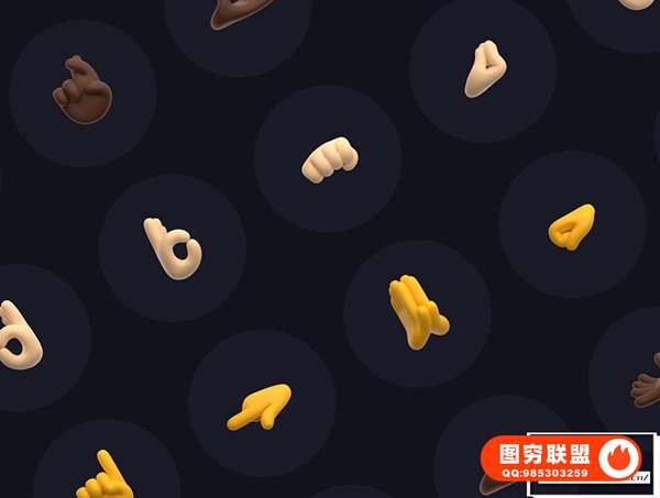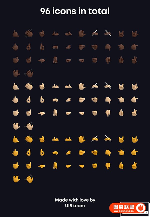 图穷联 » [图标素材]96款不同肤色可爱有趣3D表情符号手势图标素材 Gestures 3D
