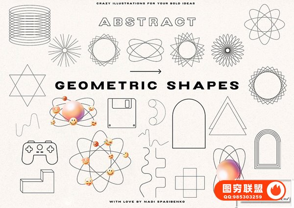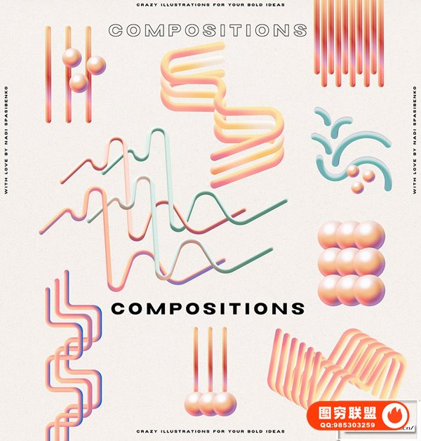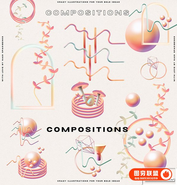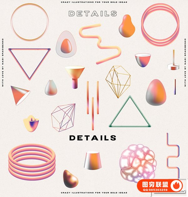 [PNG素材]150+迷幻抽象渐变立体复古表情形状元素插图设计图片素材 Hallucinations – 3D Illusion