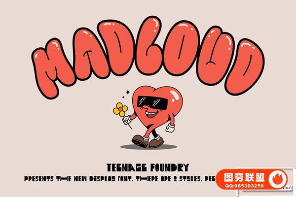 图穷联 » [字体]可爱圆润卡通描边艺术设计排版装饰英文字体 Madcloud font