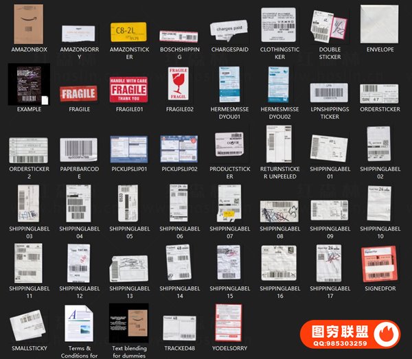 图穷联 » [PNG素材]40+物流快递包装面单贴纸条码标签票据元素PNG设计素材 Album
