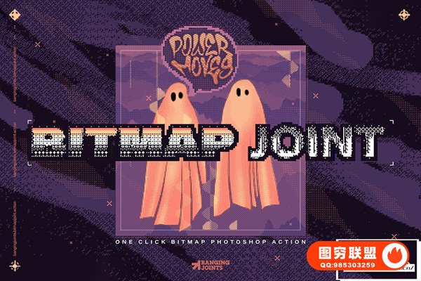 [PS动作]复古怀旧8Bit低保真像素风半色调马赛克效果PS特效动作 Bitmap Joint Effect Action