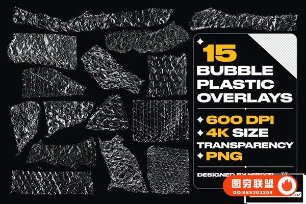 [PNG素材]15张透明塑料薄膜气泡防震膜扭曲褶皱纹理叠加图片素材 15 Bubble Plastic Torn Overlay Textures