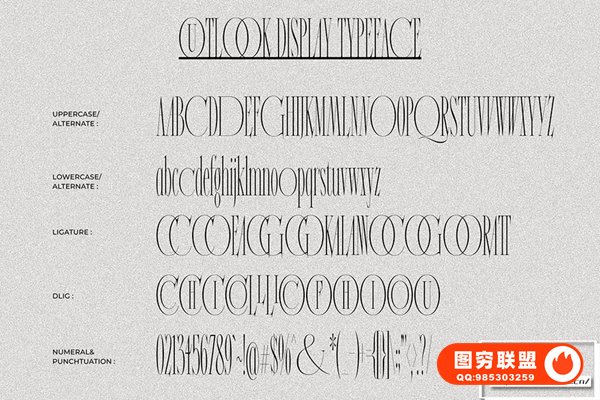Outlook Font Duo 的衬线字体散发着精致感和经典魅力。其字形精雕细琢,线条简洁,曲线精确,比例均衡,还包含多种连字(CC、CO、EA、GG、GO、KA、LA、NN、OC、OG、OO、RA、TT)和连字( CC,CH,CI,CO,LL,LI,OC,OF,OH,OI,OO,OU)您也可以在预览中看到。