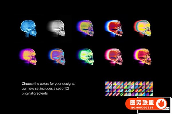然而,预览图片只是冰山一角,您可以通过此操作获得更深入的了解。所提供的52 种渐变将为您的艺术作品带来您无法想象的扭曲。如何混合它们取决于您,但无需担心 – 它们经过精心设计,无论是单独工作还是相互结合都可以很好地工作。要为艺术品添加一些个性和独特性,您还可以查看可编辑模糊选项,该选项可能会稍微冲掉画布的任何部分。不过,要小心头晕,因为这些充满活力、饱和的颜色可能会让你的创造力大打折扣。