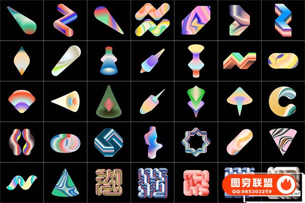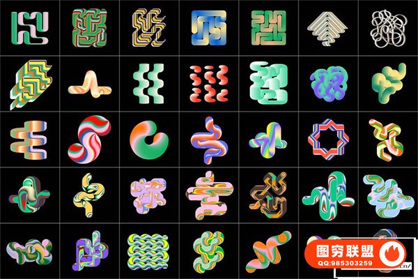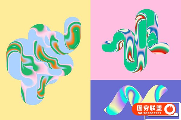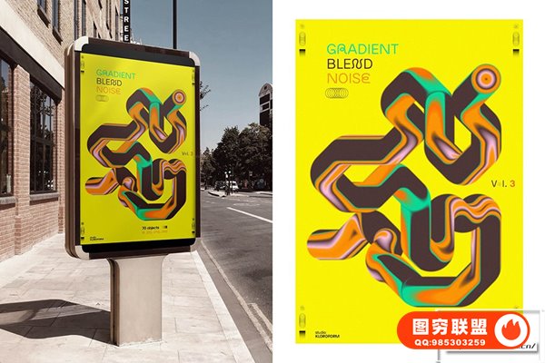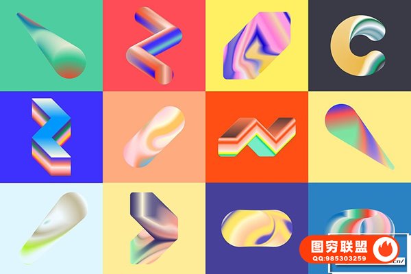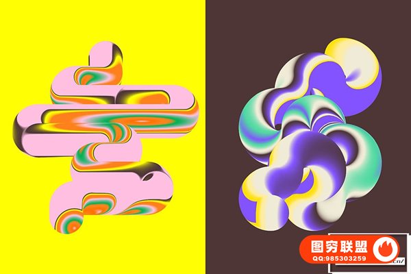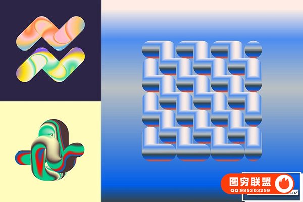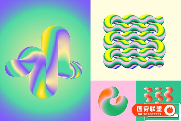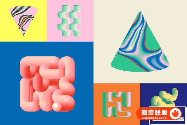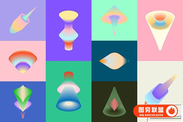 图穷联 » [图片素材]70款潮流创意怪诞抽象迷幻渐变立体几何图形艺术海报设计ai素材 Grad