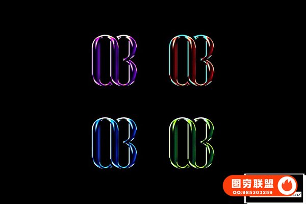 图穷联 » [PSD模板]赛博朋克科幻3D金属镀铬光泽立体标题Logo文本样式PSD模板 Glo