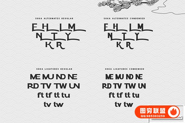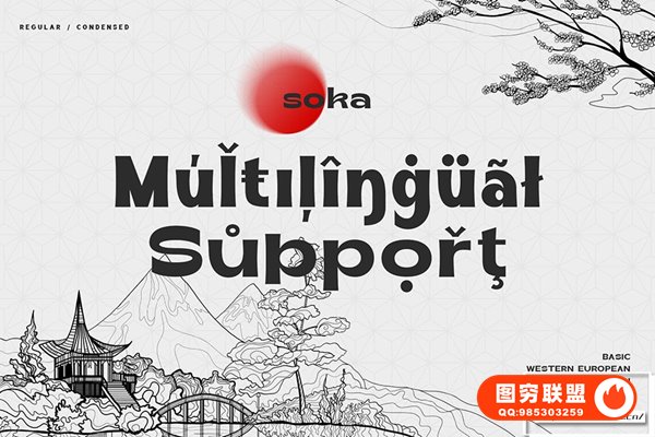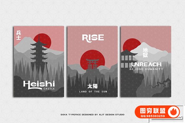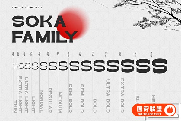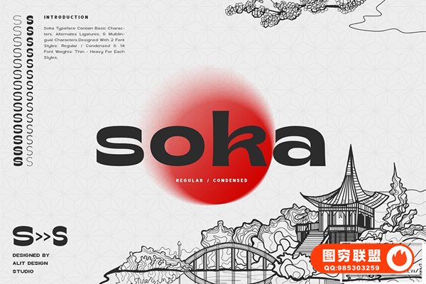 图穷联 » [字体]东方日式复古经典海报杂志排版印刷设计无衬线英文字体 Soka Typefac