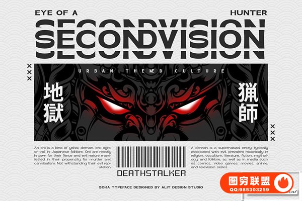 Soka字体的灵感来自无衬线字体,复古风格但仍然现代和独特。从带有日本概念的预览来看,Soka 字体在其他复古字体中看起来很独特。
