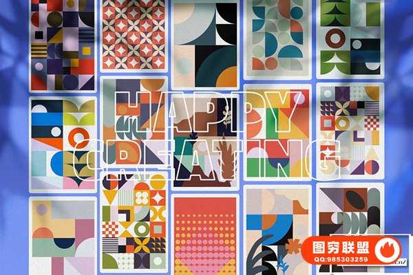 图穷联 » [矢量素材]16款孟菲斯复古极简主义抽象几何图形艺术海报图案背景Ai矢量素材 AVA