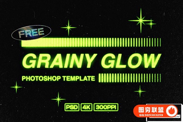 Grainy Glow 是一个免费的 Photoshop 模板,可以创建颗粒状发光效果。它适用于文本和单色元素,例如徽标或矢量。