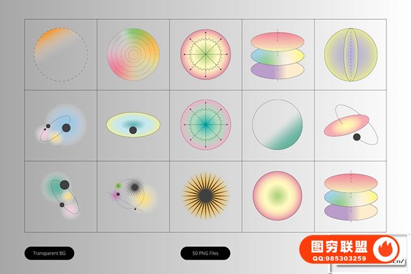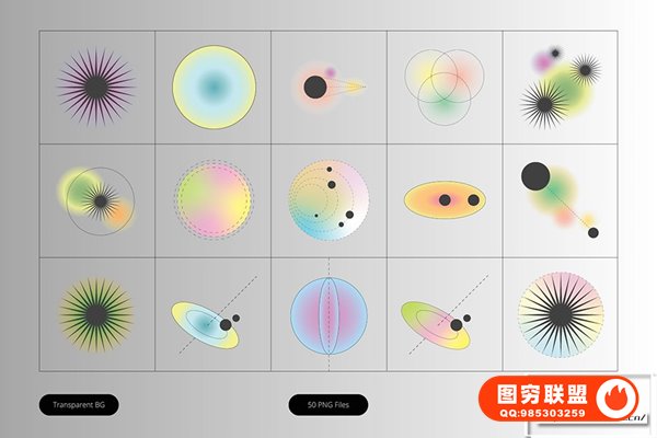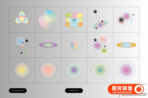 图穷联 » [PNG素材]50款复古潮流抽象艺术模糊渐变几何图形光晕PNG图片素材 Gradie
