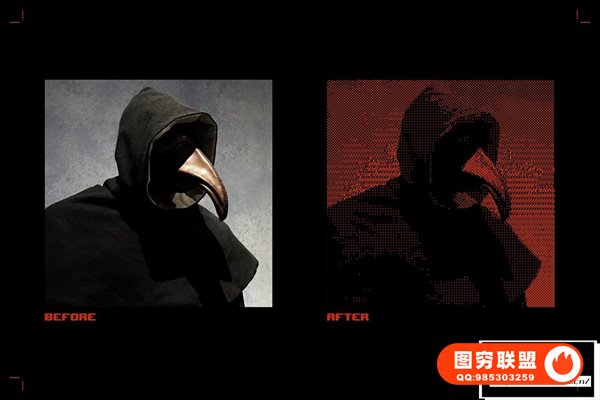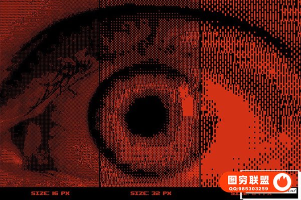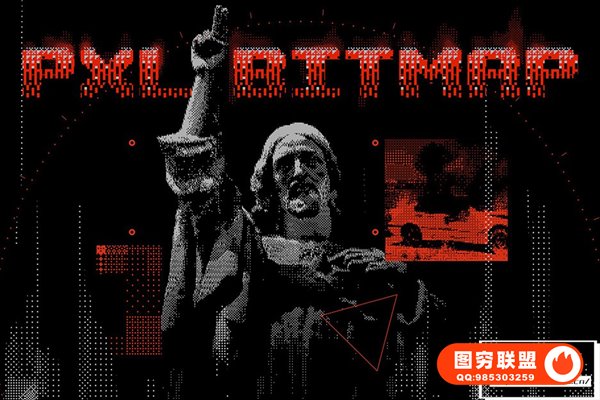 图穷联 » [PSD模板]复古半色调8Bit 像素化位图信号抖动失真效果PSD模板 Pxl Bi