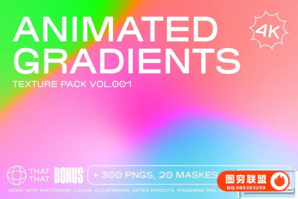 图穷联 » [图片素材]300+动态艺术多彩4K弥散颗粒感动画渐变纹理叠加视频+PNG背景素材