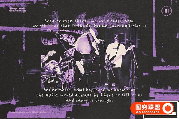 Teenage Dreams 是一种蹩脚字体,非常适合想要传达 90 年代怀旧和独立氛围的艺术品。这种手写字体是您重现剪贴簿亲密氛围所需要的。