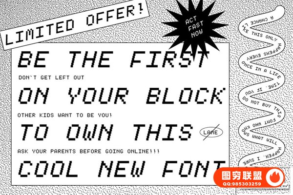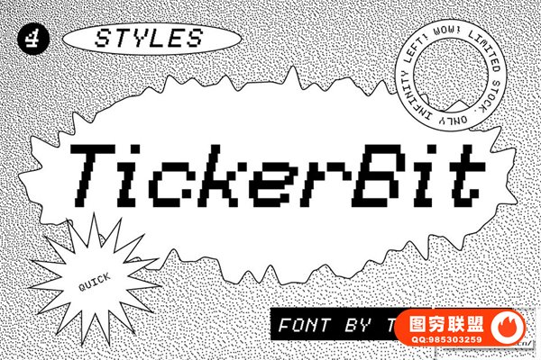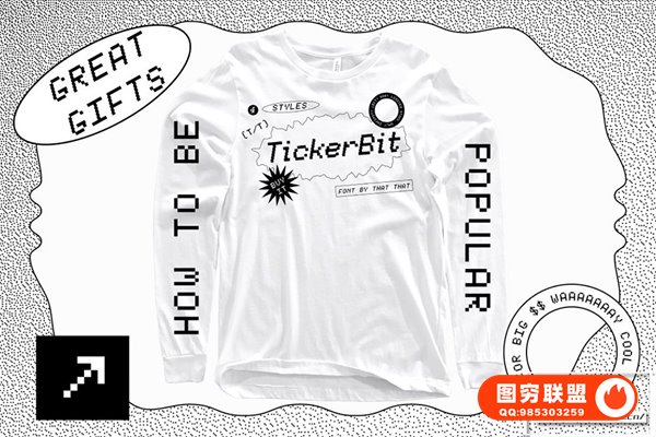 图穷联 » [字体]新潮未来复古像素化海报杂志排版设计英文字体 Tickerbit Pixel