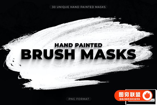 [PNG素材]30个水墨毛笔笔刷绘画笔触PNG图片素材 30 Hand Painted Brush Mask