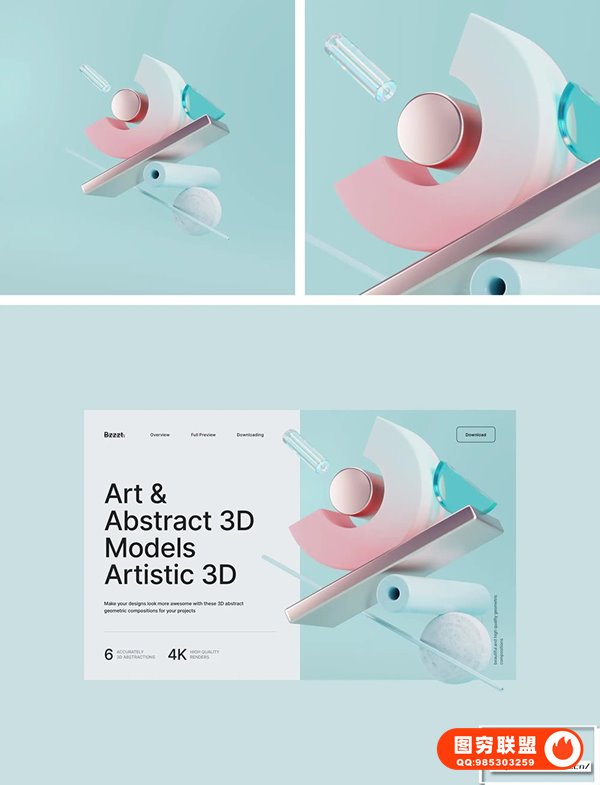 [矢量素材]6款抽象3D矢量几何图形UI设计素材 Bzzzt 3D elements