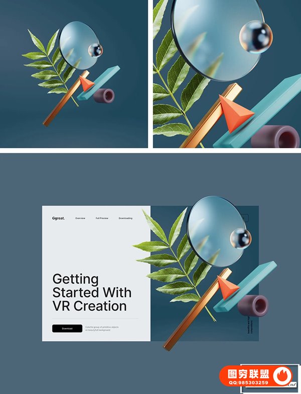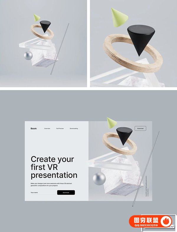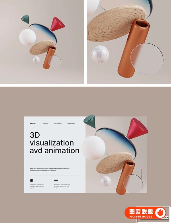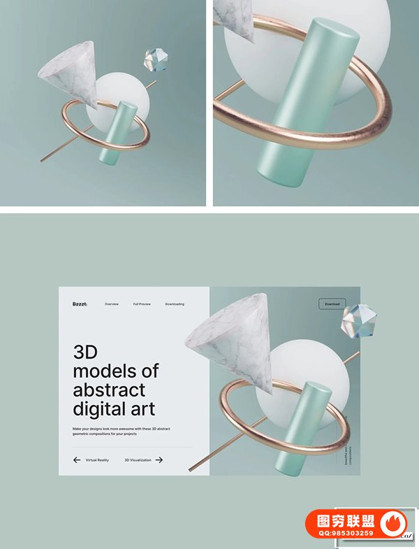 使用这些 3D 抽象几何组合为您的项目让您的设计看起来更棒,让您的 UI 设计更具吸引力和启发性!Bzzzt分层设计,易于使用,渲染精美。使用 Bzzzt 3D elements,可以快速制作UI设计demo,拉伸页面的空间感。