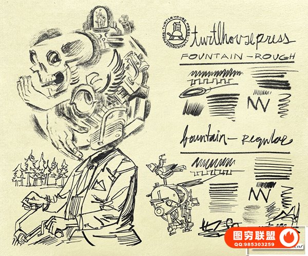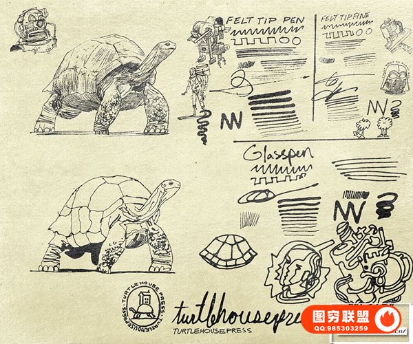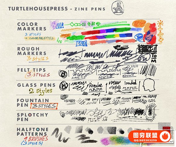 [Porcreate笔刷]潮流涂鸦记号线条笔墨水笔插画艺术绘画效果iPad Procreate笔刷 TurtleHousePress – Procreate Zine Brush Pack