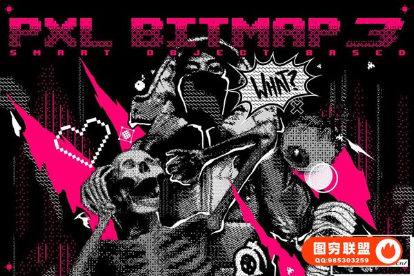 图穷联 » [PSD模板]复古半色调8Bit 像素化位图信号抖动失真效果PSD模板 Pxl Bi