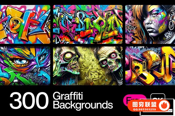 [图片素材]300款AI创作嘻哈HipHop街头涂鸦绘画喷漆墙绘艺术品挂画8K高清图片素材 300 Graffiti Backgrounds