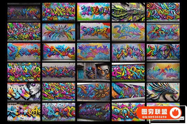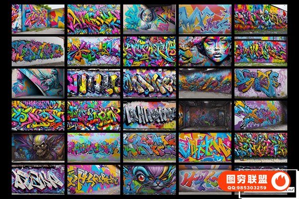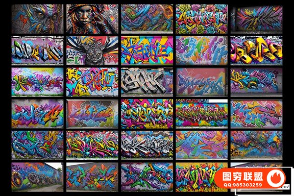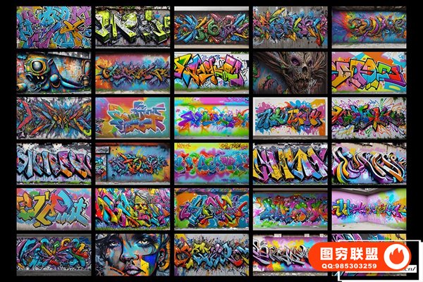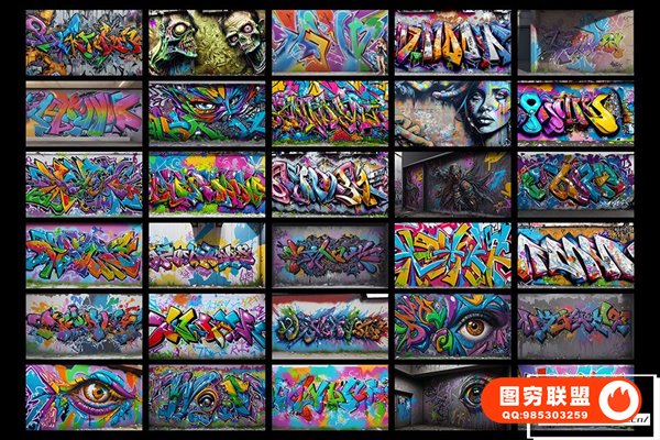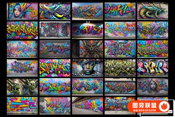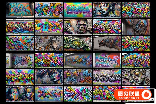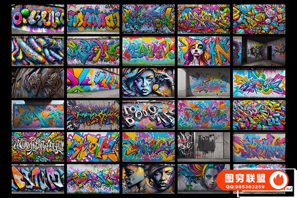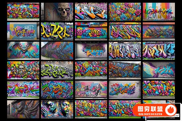 图穷联 » [图片素材]300款AI创作嘻哈HipHop街头涂鸦绘画喷漆墙绘艺术品挂画8K高清图