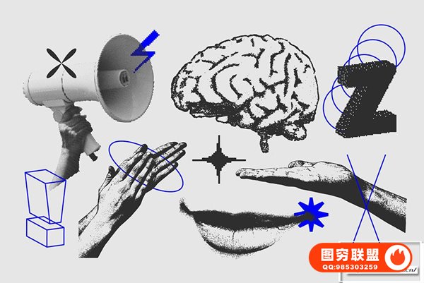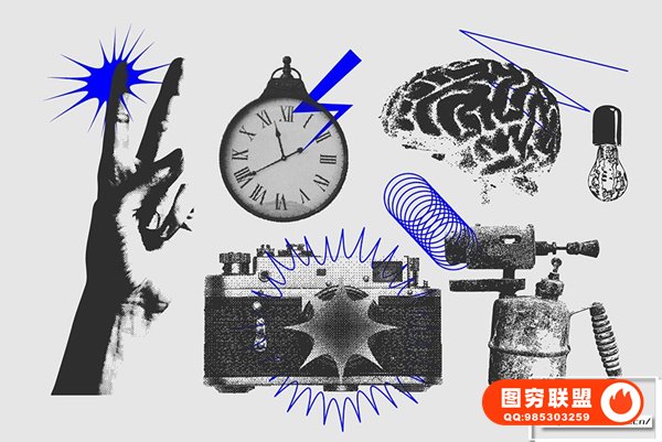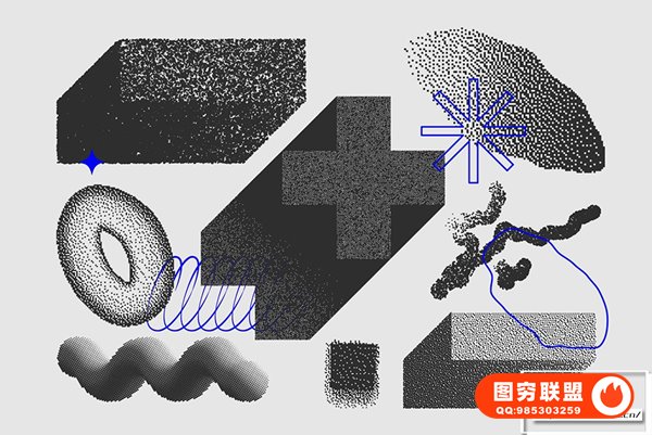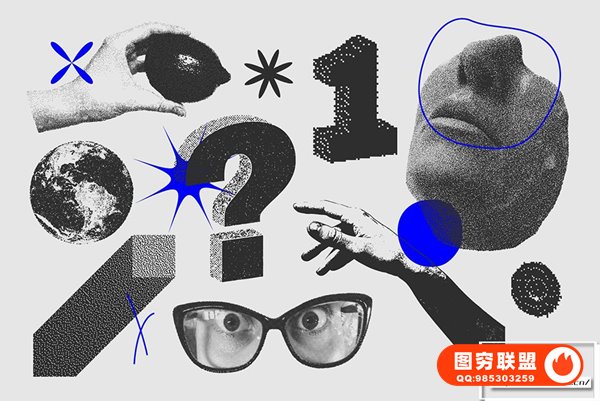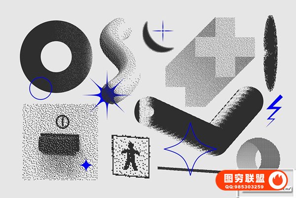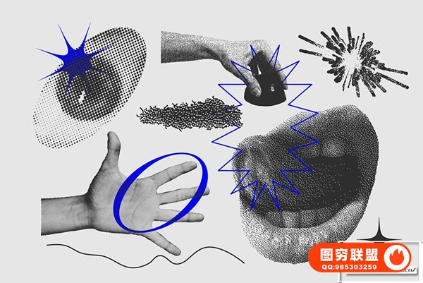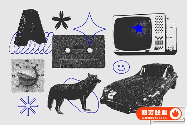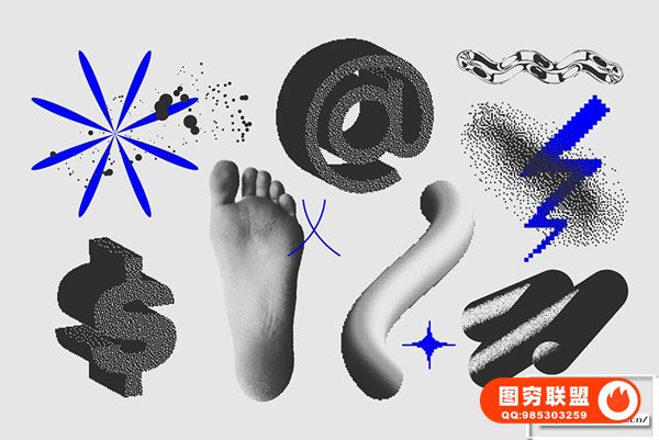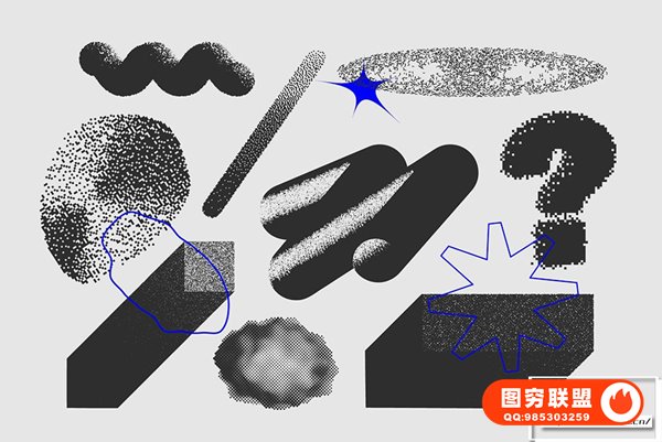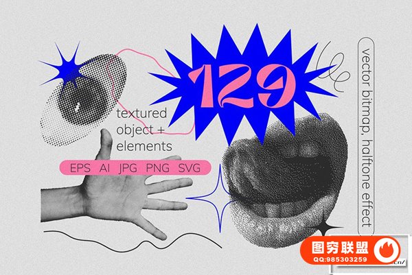 [矢量素材]129款艺术潮流复古嘻哈半调像素电音专辑封面海报背景底纹Ai矢量素材 129 Vector Halftone Bitmap Shapes