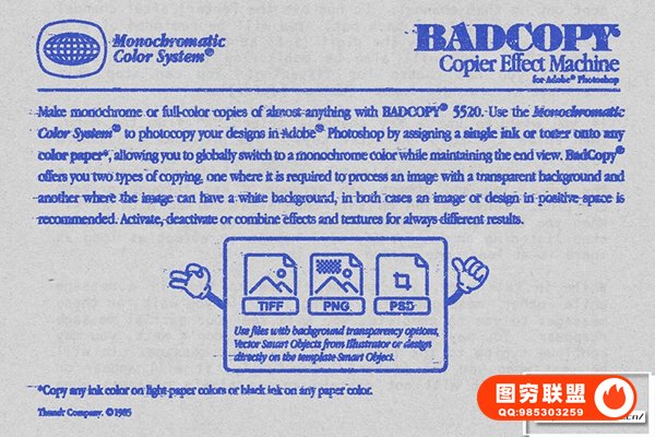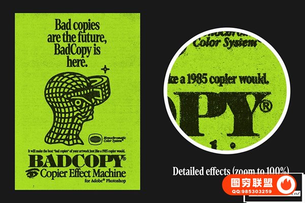 [PSD模板]垃圾复古墨水渗透打印复印错位故障叠加纹理特效PS模板素材 BADCOPY | Ink Bleed & Copier Effects