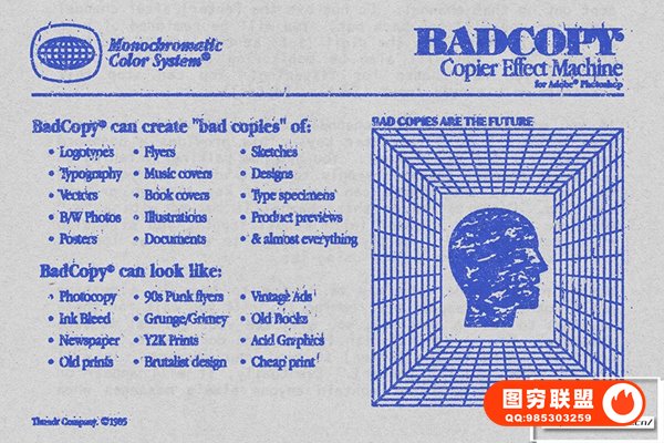 图穷联 » [PSD模板]垃圾复古墨水渗透打印复印错位故障叠加纹理特效PS模板素材 BADCOP