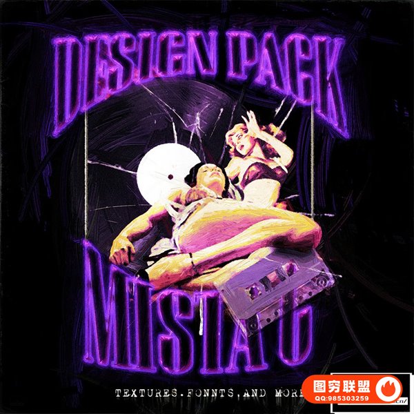 [图片素材]350+复古粗糙折痕撕纸玻璃破碎金属镀铬样式字体渐变背景图设计素材套装 Mista C Design Pack Vol. 1