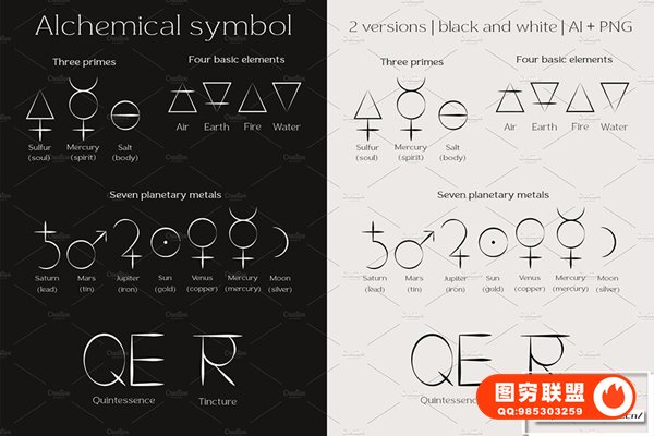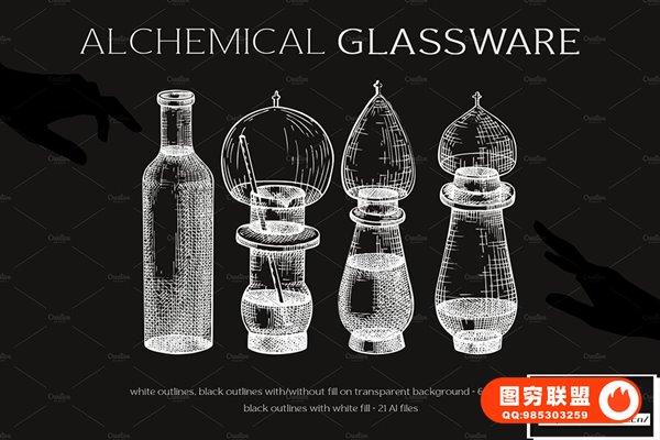 图穷联 » [矢量素材]300多个奇异世界炼金术魔法元素玻璃器皿异形图案符号PNG矢量素材 Al