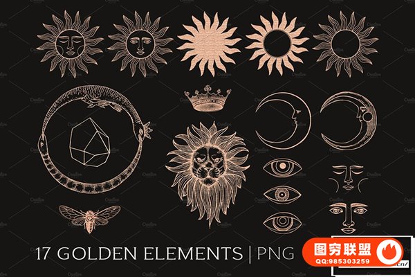 金色元素| 透明背景| 总共 17 个 PNG 文件