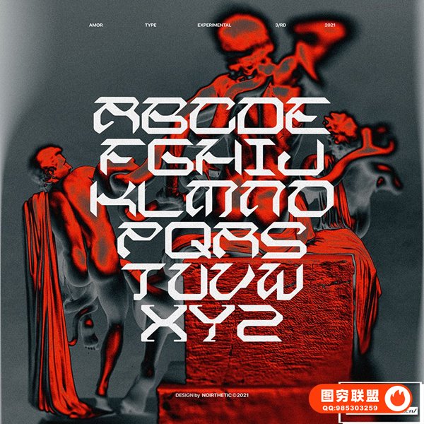 图穷联 » [字体]扭曲异形中世纪拉丁文手写艺术排版设计英文字体 Amor Typeface