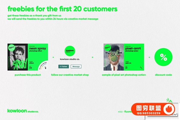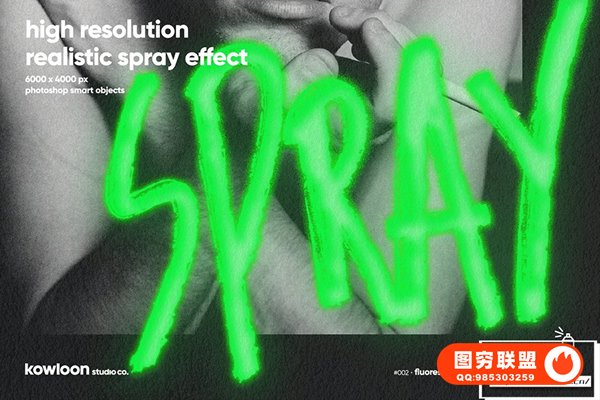 霓虹灯喷雾Photoshop效果。只需将您的设计放入 Photoshop 智能对象层,您的设计就会变成逼真的喷雾风格适用于文本、徽标、图形等。