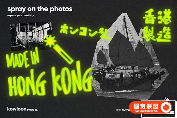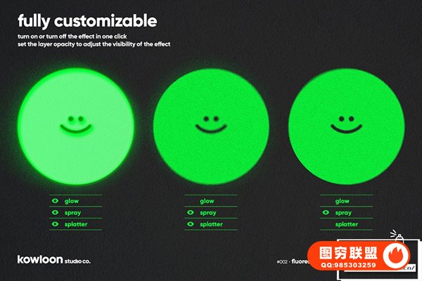 图穷联 » [PSD模板]外发光迷幻模糊霓虹灯文本样式显示特效PSD模板 Neon Spray