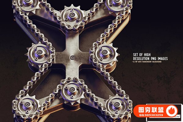 [字体]赛博工业蒸汽朋克风机械齿轮链条元素3D渲染创意设计彩色字体 Bike Mec
