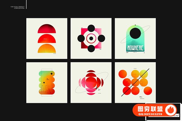 [图片素材]酸性艺术未来科幻抽象几何形状渐变背景设计素材 Vivid gradients and modern shapes
