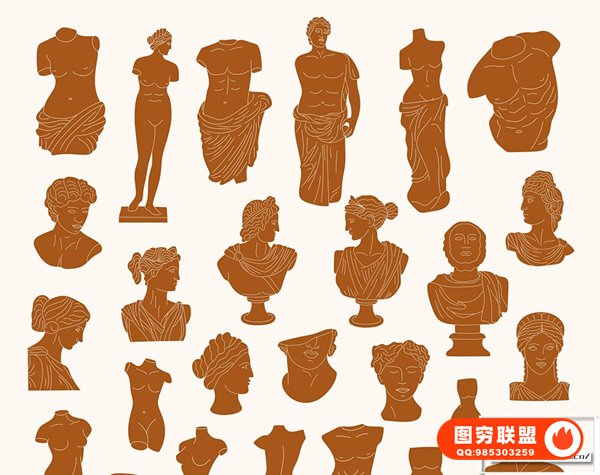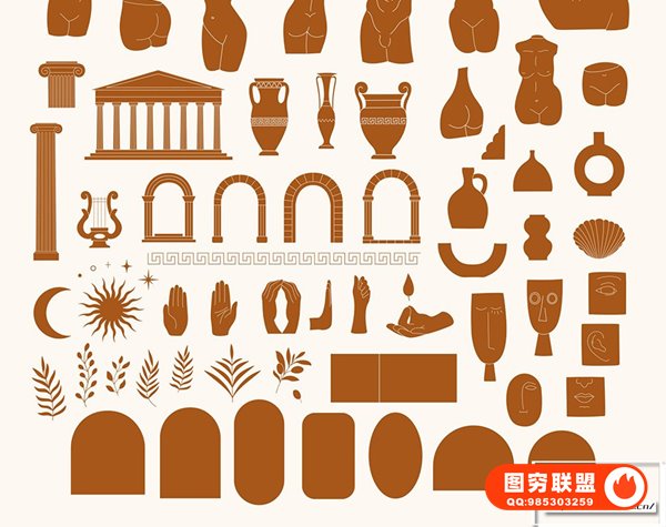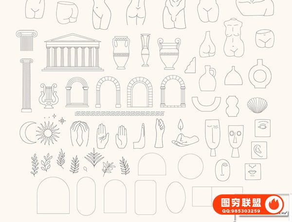 图穷联 » [矢量素材]170+复古艺术雕塑建筑门窗神像植物花纹图案简笔画设计插图矢量素材 An